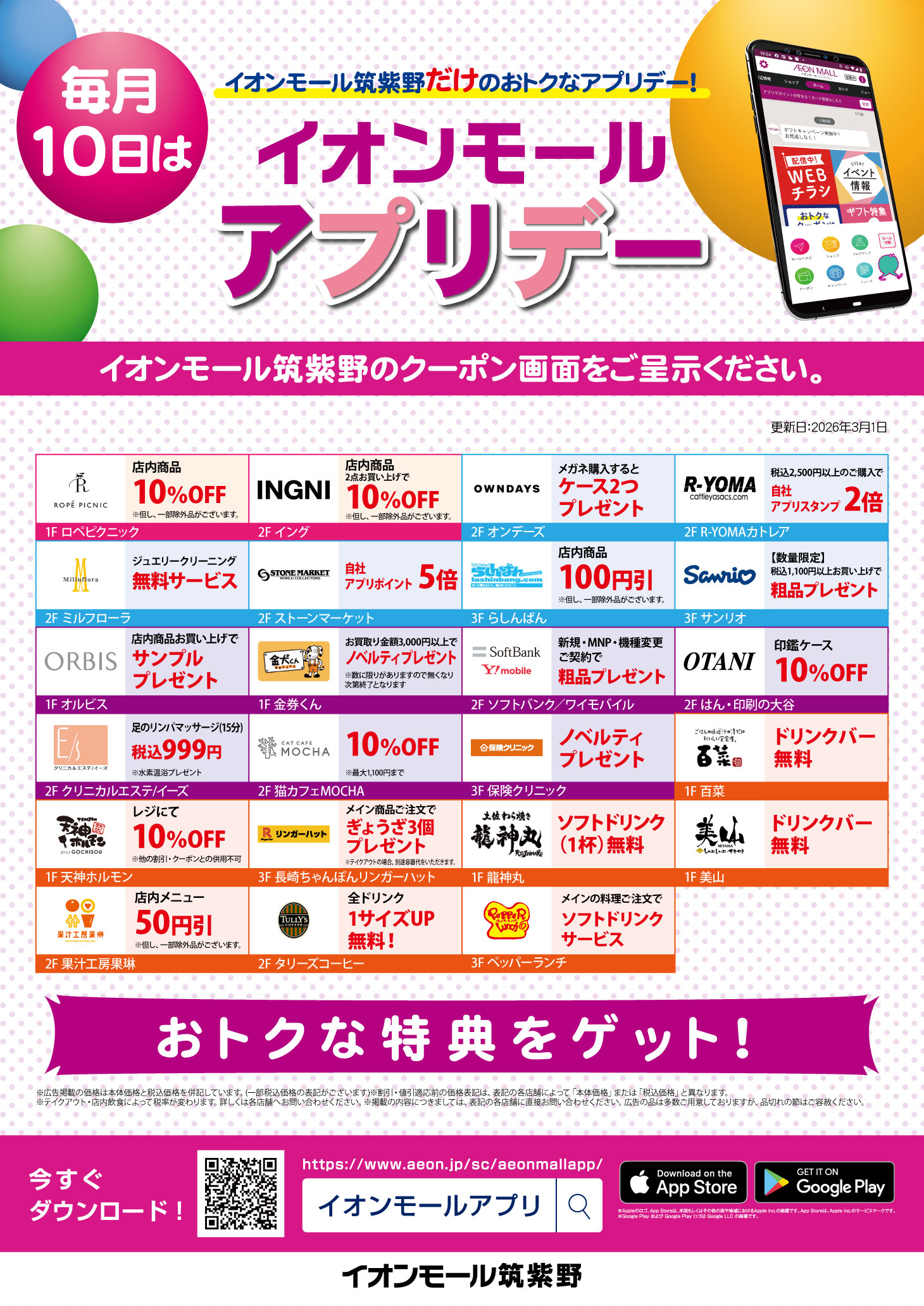 対象店舗にてイオンモールアプリのクーポンをご呈示ください。